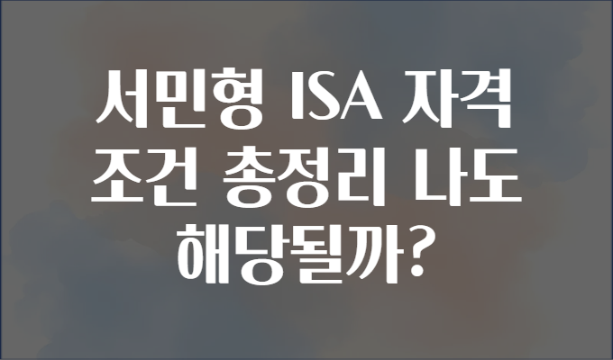 궁금하지 않으세요? 🤔 서민형 ISA, 나도 가입할 수 있을까?