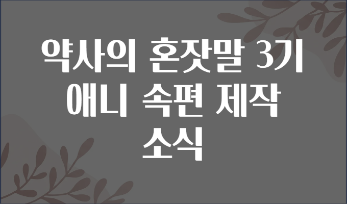 안녕하세요! 오늘은 시원한 🥤 소식과 함께 약사 직업군을 소재로 한 인기 애니메이션 <약사의 혼잣말> 3기(시즌) 속편 제작 소식을 전해드리려고 해요. 많은 분들이 기다려온 속편의 제작 소식에 벌써부터 설레는 분들이 많겠죠? 🤩