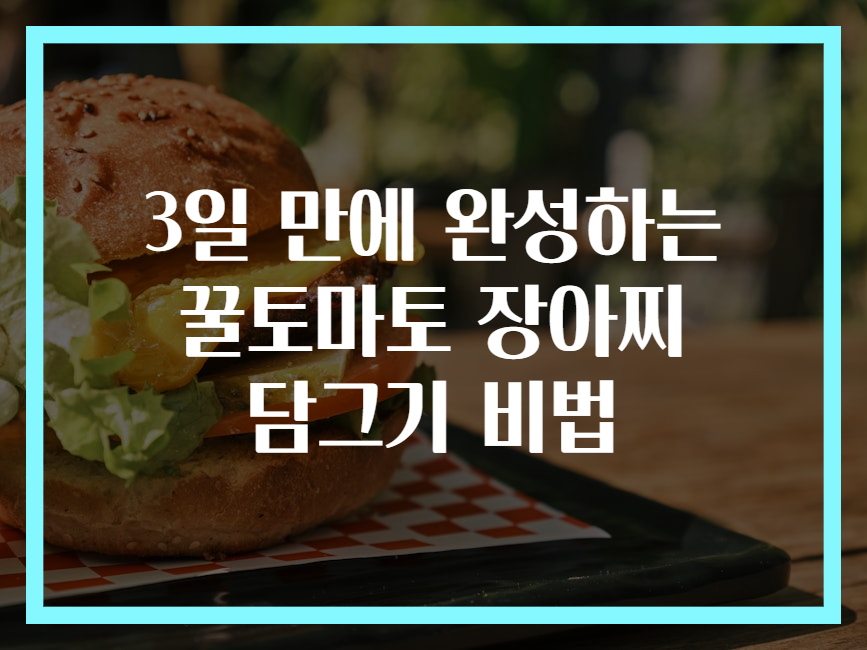 여러분도 아시죠? 평범한 일상 속에서 특별한 맛을 찾는 것이 얼마나 즐거운지! 오늘은 상큼하면서도 달콤한 꿀토마토 장아찌를 3일 만에 만드는 비법을 소개해 드릴게요. 이 방법으로 누구나 쉽게 집에서 맛있는 장아찌를 담아볼 수 있으니 기대하셔도 좋아요. 장아찌란 기본적으로 여러 재료를 절여 만든 음식인데요, 꿀토마토는 특히 그 달콤함 덕분에 더 매력적이랍니다. 자, 그럼 준비물과 과정을 살펴볼까요? 😊
